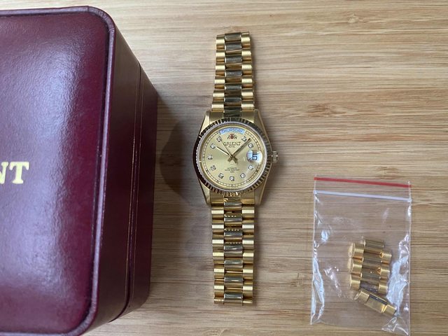 商品:Orient東方絕版香檳浮雕紋機械錶