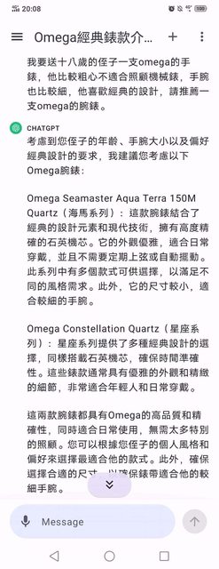 第三題更難,我故意不直接說「石英」,也說手腕細,gpt推薦的還算蠻不錯的。