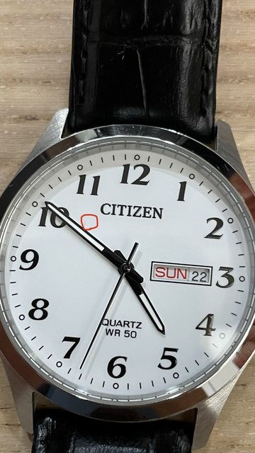 Citizen阿拉伯數字石英錶,易讀性很好,輕薄服貼,星期/日期雙顯。礦物玻璃鏡面,防水50米,適合日常休閒配戴。當初在日本網站全新購入,因入手其他錶款,所以要出售。