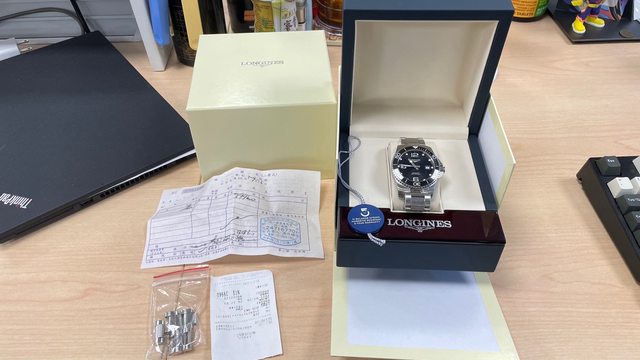 隨附物件:盒,說明書,保卡,原廠鋼帶(剩餘錶節也都在),當初購買的收據