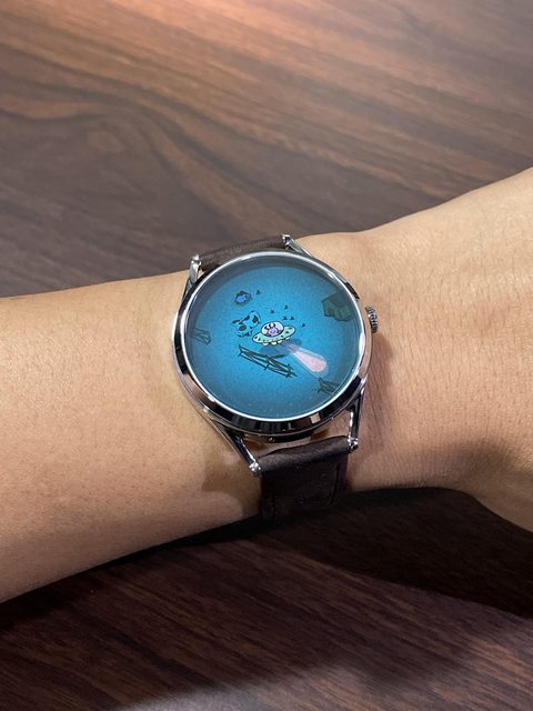 面盤上小豬是時針 外星人的光線是分針 很有童趣
