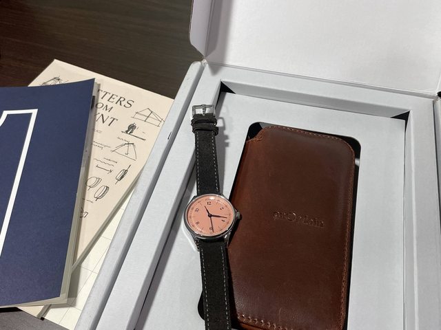 紙盒裡附上一個質感還不錯的牛皮攜行包 可以裝兩隻錶