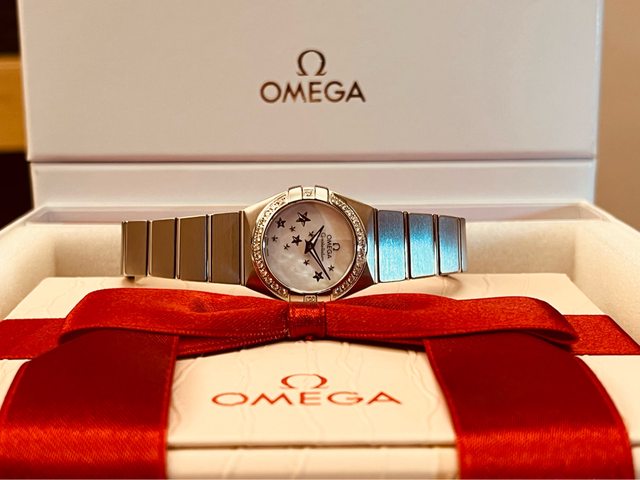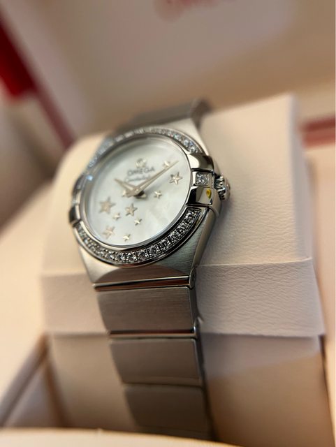 有星座系列天文台徽章,天空中的八顆星星象徵著歐米茄在20世紀獲頒的多項精準性能獎