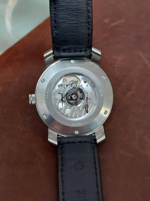 2.機芯還蠻好看的,結果透背壓上設計師的名字(會遮住觀賞啦)