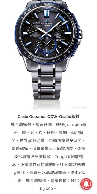 品牌名稱:Casio oceanus 海神鈦金屬 電波&GPS錶