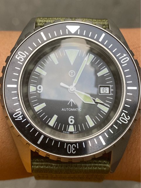搭載ETA2824機芯 防水200m 旋入式龍頭 圓頂玻璃 錶徑約44mm(不含龍頭) 走時精準,換曆正常 —————————————————- 匯款後店到店,無面交服務