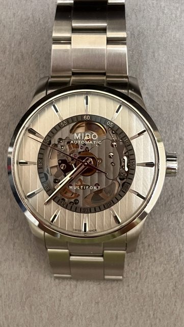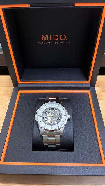 商品名稱:Mido MULTIFORT SKELETON VERTIGO(已售出) 交易縣市:嘉義市 數量:1隻 預售價格:11000 新舊狀況:2022/08/22,少次配戴,無碰撞 交易方式:面交或寄送 聯絡方式:站內信 其他說明 : 錶徑42mm,厚度10.6mm,防水100m,鎖入式錶冠,盒裝完整 商品描述:整體約9成新,無碰撞,配戴後皆正常清潔保養,錶扣有正常使用痕跡 官網參考:https://www.midowatches.com/tw/multifort-skeleton-vertigo-m038436110 3100 第一次被鏤空錶燒到,鏤空但不會很花很亂,缺點是夜光不強,就算剛照完紫外線燈仍然 不會很明顯,偏斯文的手錶,因不習慣沒日期的錶,故幫愛錶找有緣人 https://i.imgur.com/NiBD4fP.jpg