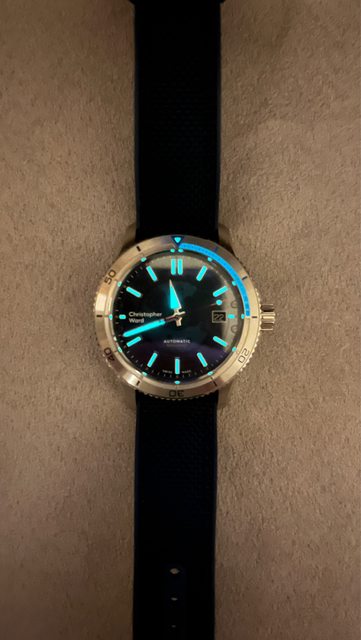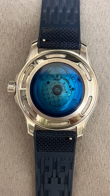 商品名稱:C60 Sapphire 40mm ? Blue/Silver ? Automatic ? Blue Orange Hybrid Rub ber(已售出) 交易縣市:嘉義市 數量:1隻 預售價格:11000 新舊狀況:2022/11/07,少次配戴,無碰撞 交易方式:面交或寄送 聯絡方式:站內信 其他說明 : 保固外,錶徑40,防水600m ,盒裝完整 商品描述:整體約9.5成新,無碰撞,配戴後皆正常清洗保養,計時圈格數120格,錶帶無 橘邊,附官方清潔布 官網參考: https://www.christopherward.com/dive-watches/c60-sapphire/C60-40ADA3-S00B0-HO. html 計時圈1-15分鐘有特殊的突起藍色塊狀螢光,相當特別,面盤為微透明的藍色,可以看到 機芯夾板及日期輪,但又不會影響讀時,底蓋也是同色的蓋板,600m防水但相當纖薄,當 初群組看到分享照以及官網照很上火,現在更清楚自己喜歡的錶款類型,故幫曾經的愛錶 出售 https://i.imgur.com/HpKAkYA.jpg