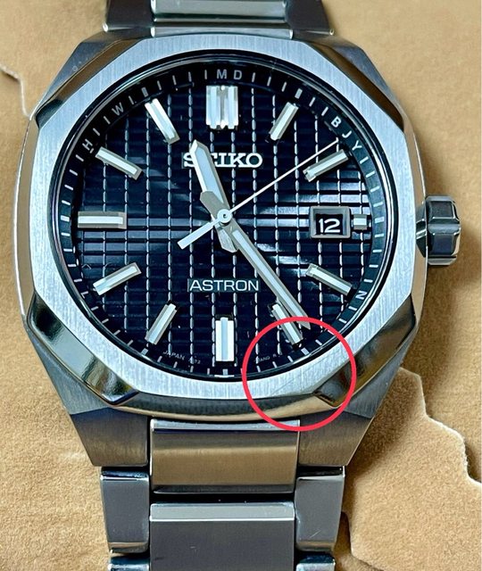 備註:錶盤有一刮痕處如紅圈處,介意請勿購買。購自Morks錶商。本支為光動能電波對