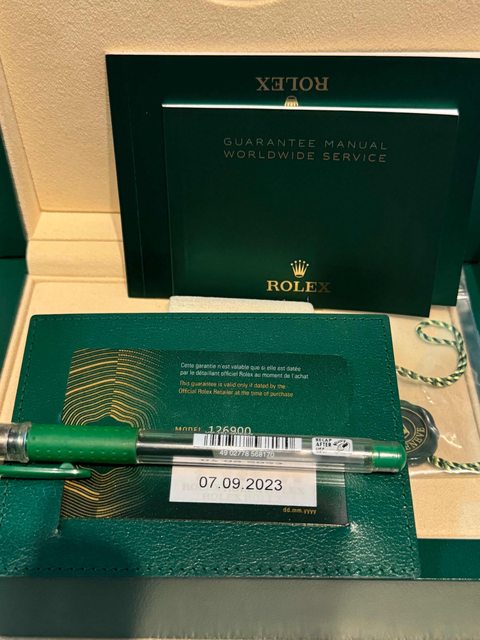 品牌: Rolex 錶款: 126900 新空霸 3、6、9夜光 /動力儲備70小時/ 防水100米 年份: 2023/09 屬品: 盒單齊全 售價: 239,000。 附註:未經拋光,正常使用痕跡品項極新95%, 走時+1秒/DAY