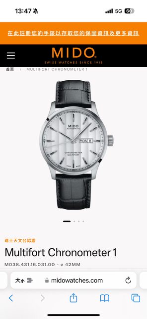 品名:Mido Multifort Chronometer 白面