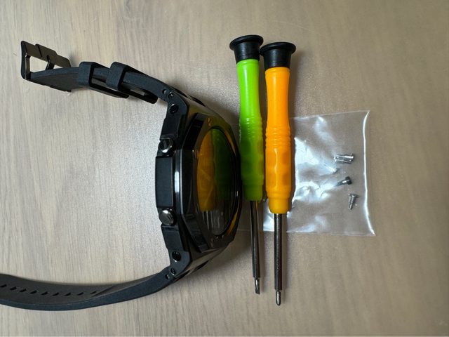 手錶今年6月購自momo +改裝用槍灰金屬框+錶帶含拆裝工具一齊賣,螢幕有貼鋼化膜,桃