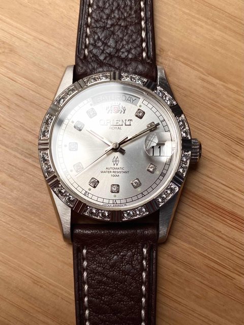 商品:Ogival愛其華金字塔紋白面18k半金蠔式機械錶