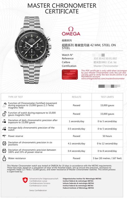 走時良好,一天快0.5秒(omega出廠檢測)