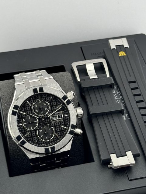 品牌名稱:Maurice Lacroix 艾美錶 手錶型號:AI6008-SS00F-630-D(42mm) 購買年份:2024/8 欲售金額:49000(訂價85000) 備註:雙錶帶