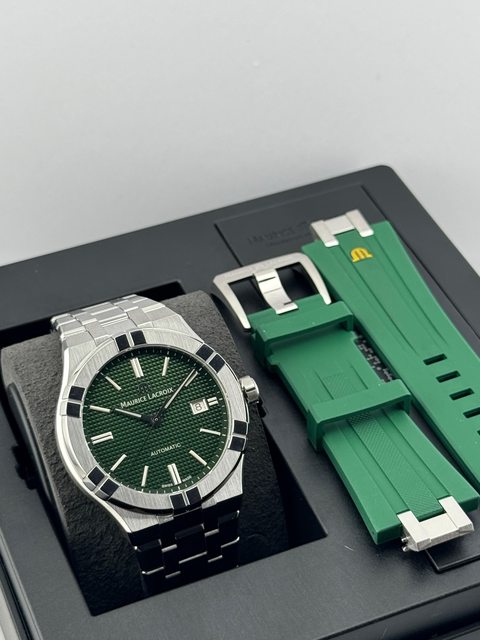 品牌名稱:Maurice Lacroix 艾美錶 手錶型號:AI6008-SS002-490-1(42mm) 購買年份:2024/8 欲售金額:52000(訂價88200) 備註:超美綠松石,配上中東面盤,限量中的限量