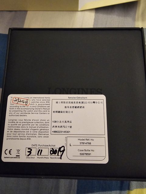 隨附物件:保卡、盒子、剩餘錶節