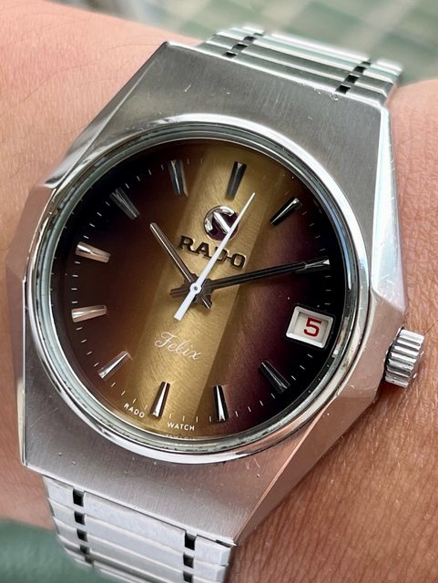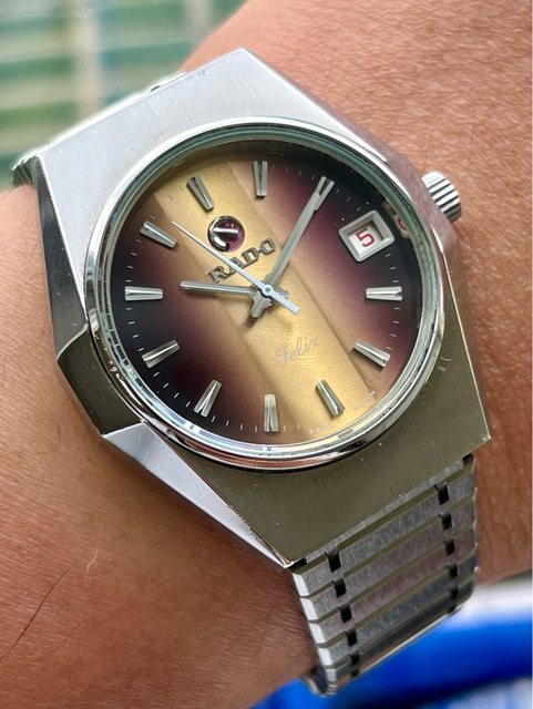 Rado Felix 自動上鍊機械錶 超特殊 超希少 漸層面 特殊造型錶殼 個人覺得有點鋼彈的線條感 Eta2824機芯 原裝錶帶 原裝龍頭 快調正常 日期瞬跳 售5200