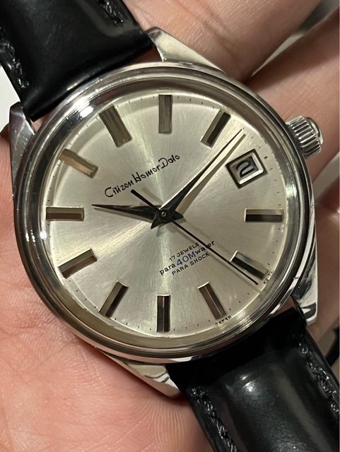 Citizen Homer date 昭和39 分鐵 no.17 來自1960 大分鐵道局 與一般鐵道錶不同的是,這支非數字而是金屬時標,並且有日期窗,無停秒功能 推測應為事務員用 且刻印方式與現行多數70年代看到的不同 應為早期的刻印方式 *錶殼五點鐘附近外圈有一較明顯之痕跡 不影響使用 售4300