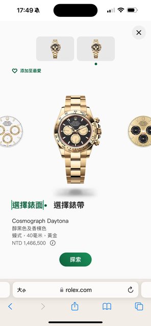 ※ 引述《benji2007》之銘言 : 品牌名稱:Rolex : 手錶型號:126508-0002 : 保卡年份:2024/10 : 欲售金額:147萬 : 物品所在地:台北 : 隨附物件:盒單全 : 聯絡方式:站內信 : 物件狀態:全新錶節未調 : 原購買處:國外AD : 其他:勞服驗錶收一成訂 : https://i.imgur.com/QFVOKHg.jpeg