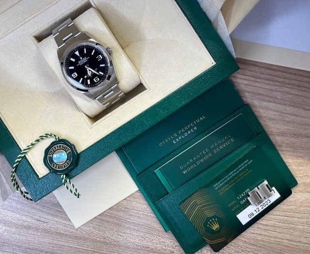 不過124270還是把時標、指針做了些許的放大 本來369時標的白色漆線也改成了夜光塗料 這只124270整體品項非常的新, 應該也是目前市面2023年最便宜的了 品牌名稱:Rolex 手錶型號:explorer 124270 物件新舊:如圖 保單日期:2023/12 欲售金額:240000(不議價感謝大家) 物品所在地:桃園青埔 隨附物件:盒單齊全 聯絡方式:站內 --