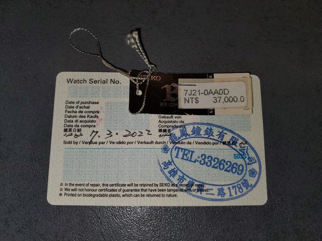 隨附物件:原廠盒單,代用錶帶藍綠各一條,原廠折疊扣