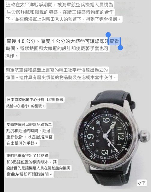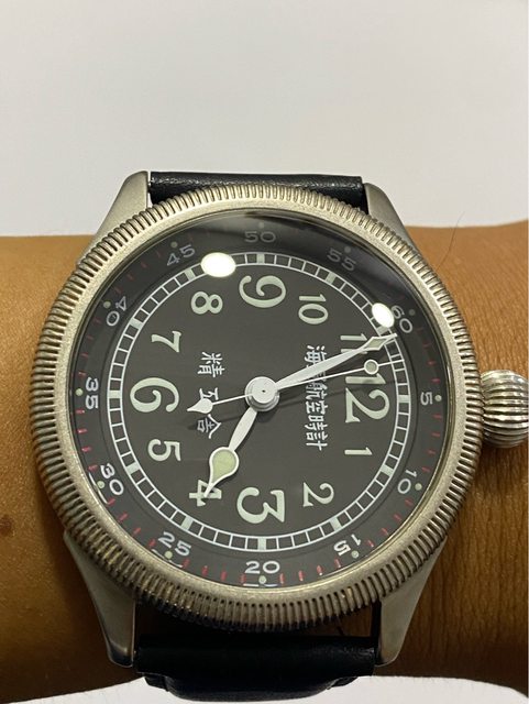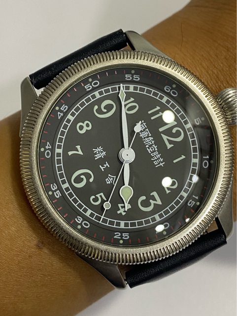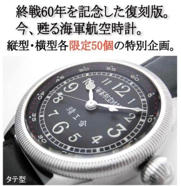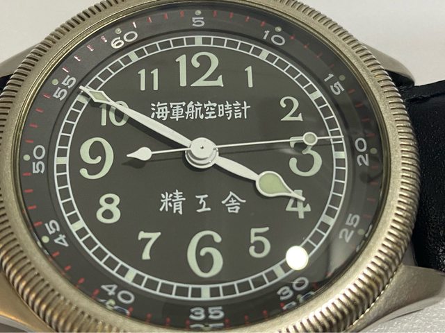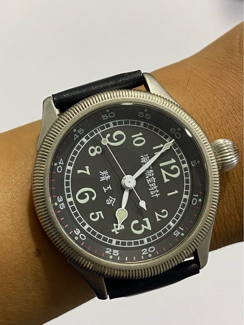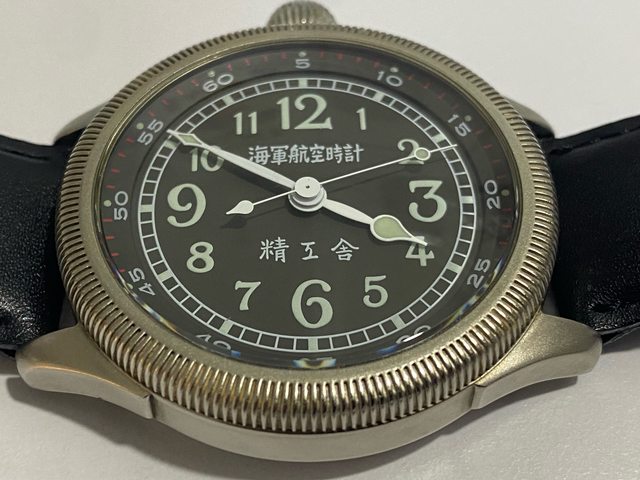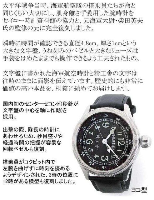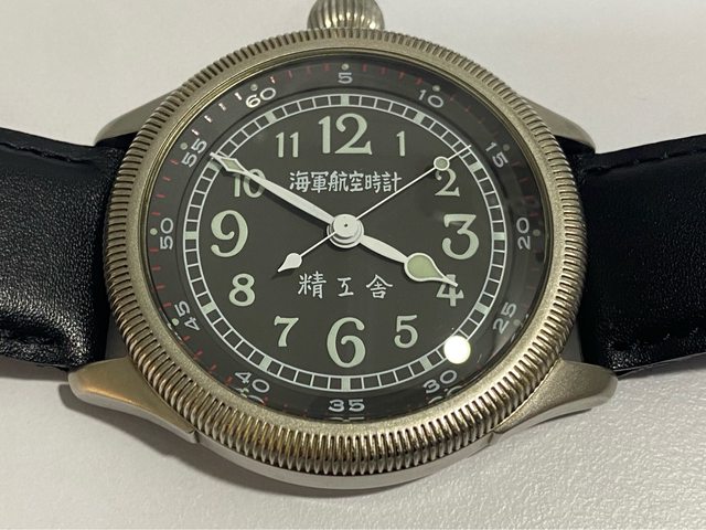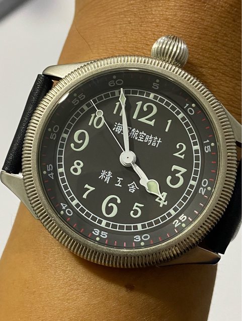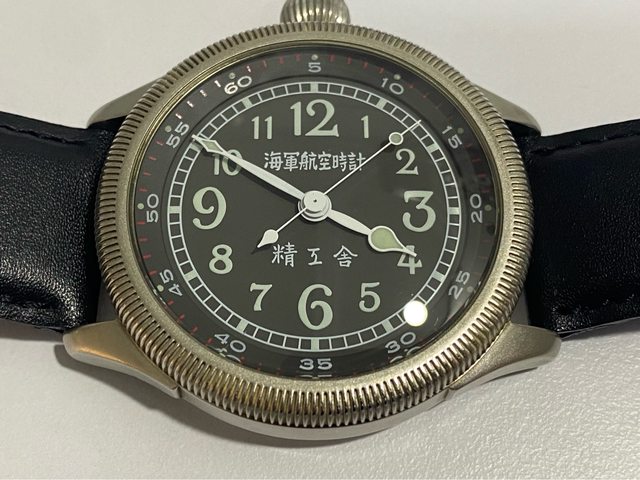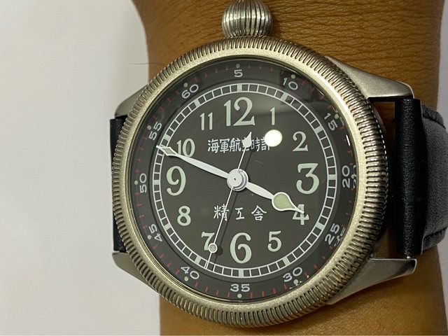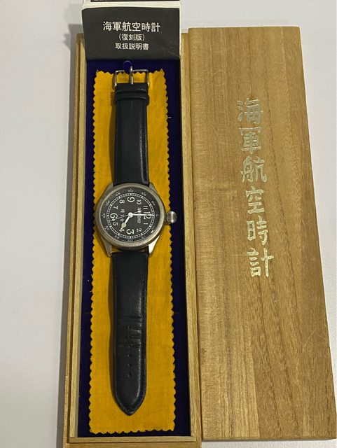 品牌名稱:海軍航空時計 精工舎 手錶型號:(民間復刻版) 保卡日期 : 無保卡 欲售金額:8660元(含店到店 【走時程度】正常 隨附物件:單錶一顆,原廠盒 聯絡方式:私訊 物件總評 : 二手美品,走時正常 其他說明:匯款後店到店寄出,無面交,無交流 ————————————————— 由日本元海軍大尉柴田英夫監修與精工鐘錶博物館合作,紀念終戰60周年所製作二戰中日 本飛行員所使用的手錶,看膩了歐美飛行錶款的錶友可以試試看大日本帝国海軍的飛行錶 ,配戴出門非常吸睛,有國外錶友使用檸檬酸加速錶殼氧化,更有當年的味道,也可以使 用銅油輕微擦拭還原顏色,非常好玩。 錶徑:約48mm 機芯:SEIKO CALIBER Y675(7s25) 錶殼:鍍銅黃銅 錶冠:洋蔥圈(可旋轉) 厚度:約12mm