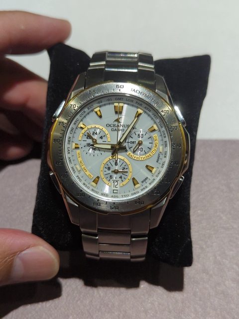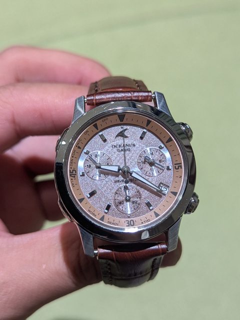 卡西歐海神女錶ocw10粉紅色 八成新 支援日本美國電波 台灣時間要看小視窗 2500含運 更換新鱷魚皮蝴蝶扣錶帶