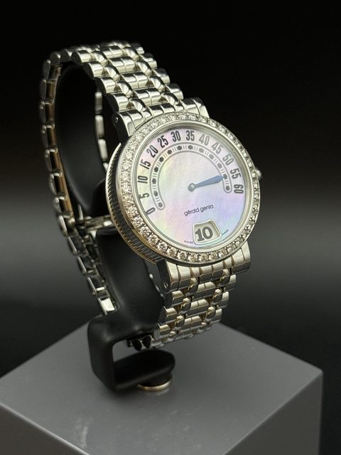 備註:石英錶,白金材質,貝母面盤,鑽石約2克拉