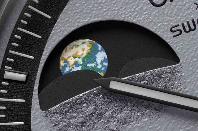 ,因此在扇形視窗中會露出一個地球圖案,它就像SWATCH在預告短片中透露的,以藍色、
