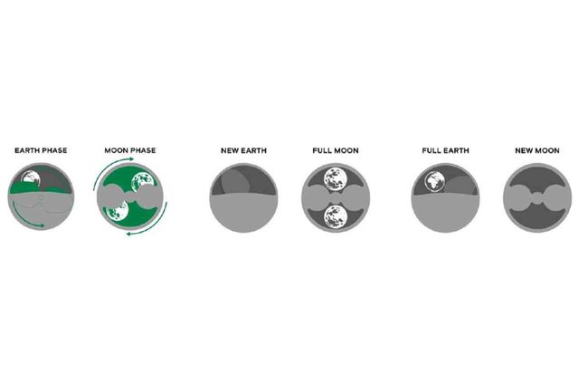 To The Moonphase的基礎上加入錶壇過去還沒有品牌發明過的地相顯示功能。究竟什麼是