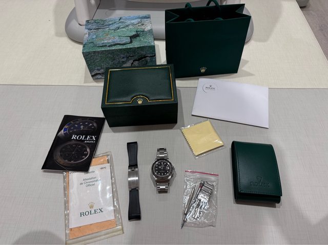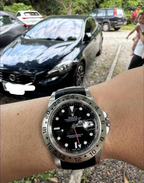 品牌名稱:Rolex 手錶型號:Explorer ll 16570 購買年份:Y字頭,2024/3東京勞服保養保證卡(保固至2026/3) 購買來源:日本拍賣 欲售金額:暫售 18.8W -> 17.8W 聯絡方式:站內信 交易方式:雙北面交 物件描述: 1. 購買時單錶,因想收藏故後來有買了同樣Y字頭的盒單(請參考圖) 2. 錶況好,外觀正常使用痕跡 無大傷,夜光正常 3. 原錶是舊版的錶扣,後來有購入膠帶與兩個副廠的錶扣 可交流,大刀別來...感謝