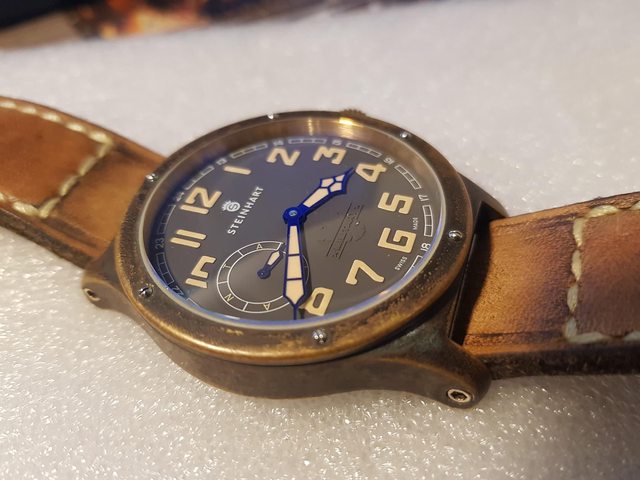 : : : 物件描述:原厰牛皮袋,原廠錶帶全新,錶徑47mm,搭配ETA6497機芯,銅殼藍針,小?