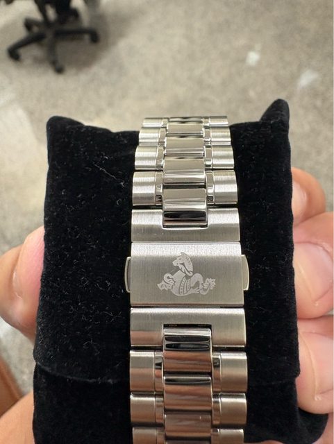 背面跟錶扣都有海馬圖案,只是SpeedMaster,為什麼會用海馬的圖案,小弟就不懂了,