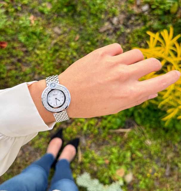 備註:石英錶,白金材質,貝母面盤,鑽石約2克拉