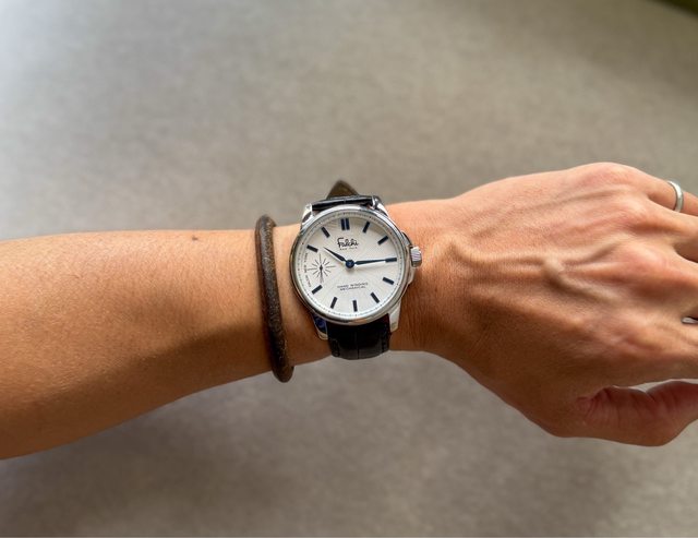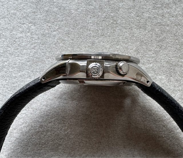 殼是鈦材質,上手感很輕盈,外觀有使用痕跡,機芯已洗油保養,走時功能夜光功能正常