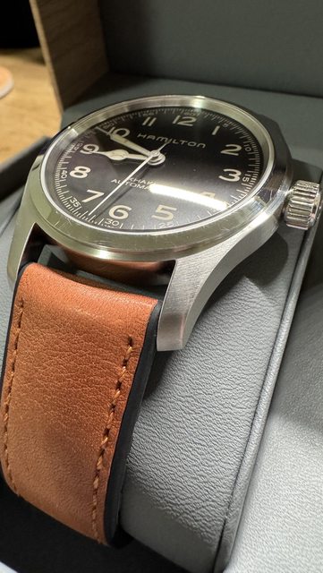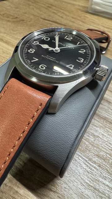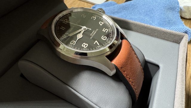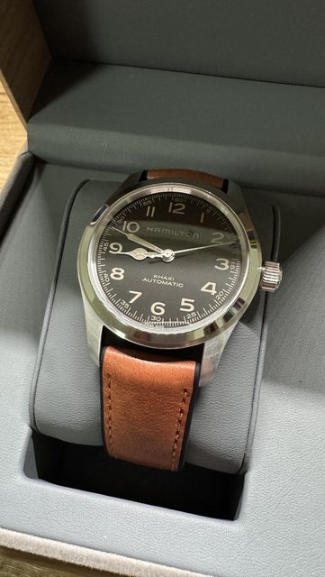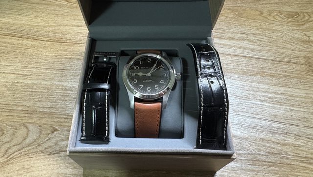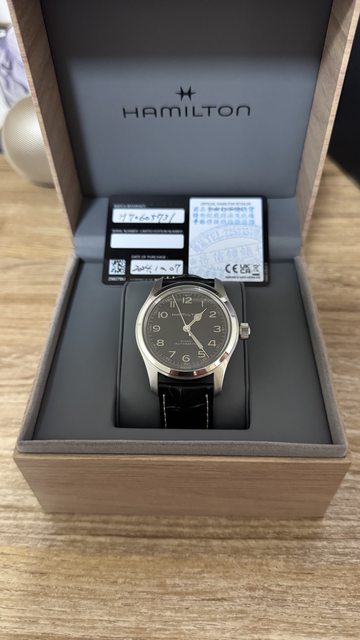 品牌名稱:Hamilton 腕錶型號:H70605731 官網訂價:33,000 販售金額:20,000 保卡年份:2024.10.7 (兩年保) 目前錶況:有使用痕跡,右下錶耳有一點碰傷 這陣子買了一條Eulit的錶帶,一併附上 配件狀況:盒單齊全 交易方式:台南面交,其餘匯款後寄出(建議面交)